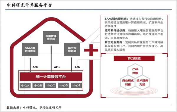 目前,中科曙光在全国部署了50多个云计算数据中心,掌握全国最大算力资源,今年还正式上线“算力交易平台”,第三方可以接入算力资源池。而且,公司已经助力百度、紫东太初等大模型训练,为其提供AI算力服务以及AI服务器等基础设施。