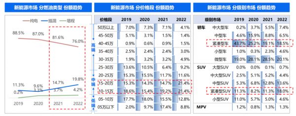 宏大的数字叙事下,我们看到了中国品牌的两个重大转型趋势:第一,价格战不打了,改打技术战。主流中国品牌都在这一年,先后推出了自己的插混技术,比亚迪第三代DM-i,吉利雷神,长安蓝鲸iDD,长城柠檬DHT;第二,以比亚迪秦DM-i为代表的“敢死队”,向合资品牌腹地——A级轿车杀了个回马枪。