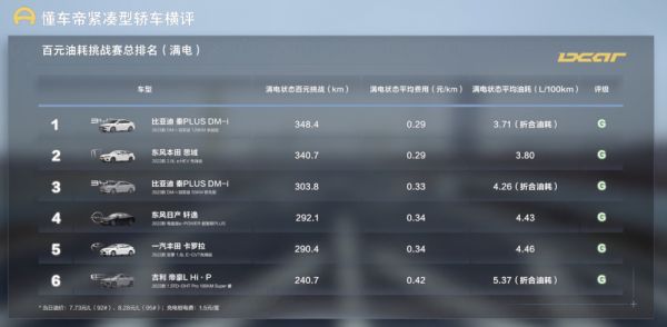 在懂车帝对近期对喜闻乐见中日美德韩A级车横评中,中国品牌在多项测试中的优势,都过于明显。比如百元油耗挑战赛中,比亚迪秦PLUS DM-i的两款车型分列第一和第三,被奉为混动宗师的卡罗拉双擎是所有测试混动车中,最早因为没油趴窝的。在实际道路油耗测试中, 比亚迪秦PLUS DM-i和吉利帝豪L混动分列前三,最省钱的一公里只要2毛8分钱。