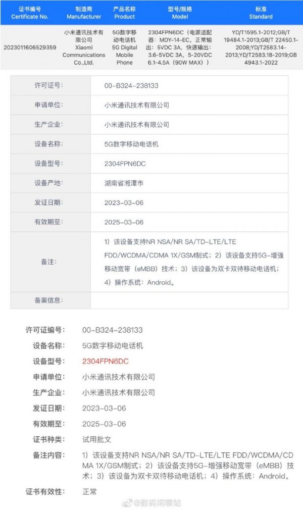 小米 13 Ultra 手机三证齐全:支持 90W 充电,只待发布