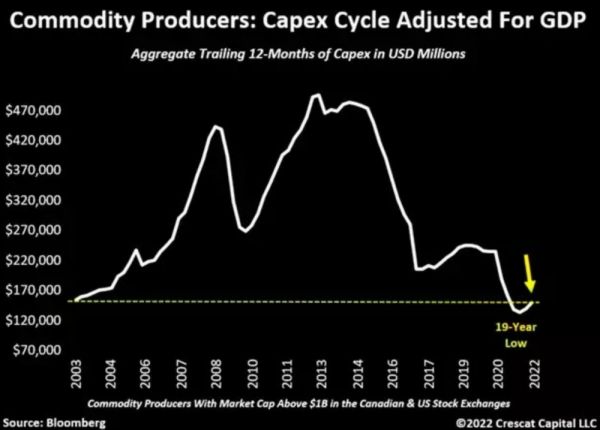 为什么呢?我觉得一个很重要的原因,是通胀。金矿公司的成本里面,有40%左右是人力和能源。