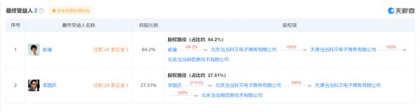 目前,当当网的运营主体公司北京当当网信息技术有限公司,俞渝为公司最大股东和法定代表人,持股比例达64.2%。李国庆持有该公司27.51%的股份。