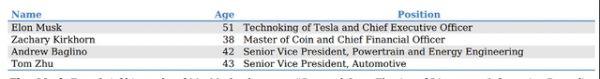 在朱晓彤之前,特斯拉还列出了三位高级管理层,分别为CEO埃隆·马斯克、CFO扎克·柯克霍恩(Zachary Kirkhorn)以及动力总成和能源工程高级副总裁安德鲁·巴格里诺(Andrew Baglino)。