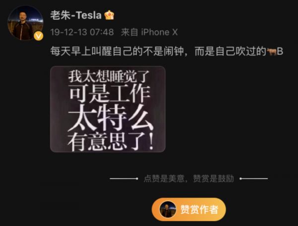 上海工厂投产时期,他还在微博上发过一张图:我太想睡觉了,可是工作太有意思了。