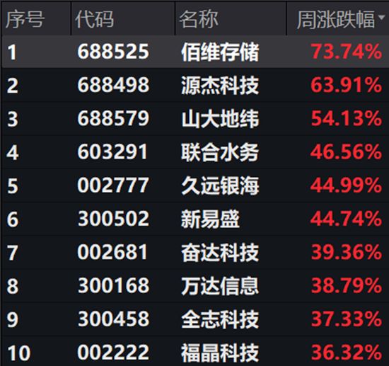 三天内两次涨停的佰维存储(688525.SH)成为本周牛股之首。该公司主要从事半导体存储器的存储介质应用研发、封装测试、生产和销售,存储产品占收入比重达99%;已推出高性能内存芯片和内存模组。23年2月27日国家大基金二期入股长江存储,长江储存增资至1052.7亿元,增幅超87%。
