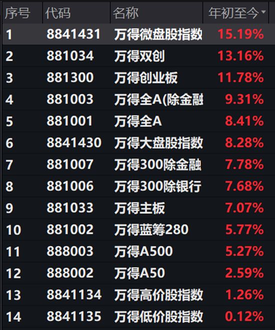 从本周的表现来看,万得微盘股指数确实处于下跌。但也要看到,该指数年初至今上涨了15.19%。
