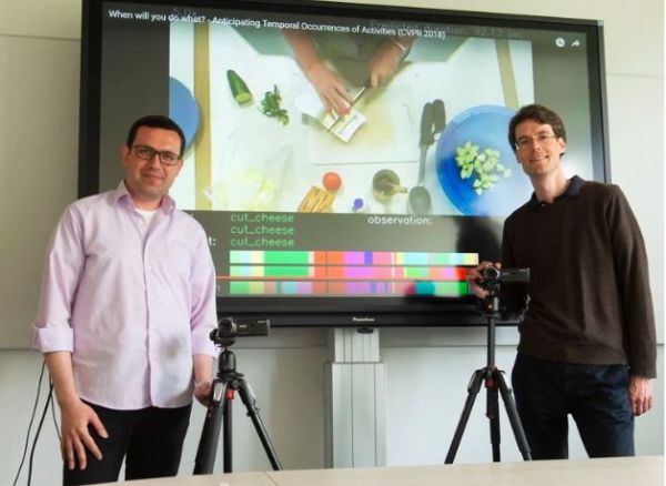 而在波恩大学的研究中,研究者将RNN和CNN结合在一起,对不同动作打上标签,既对动作细节进行预测,又对不同标签出现的序列进行预测。在这种方式之下,AI仅仅通过两个小时的学习,就能够在人类制作沙拉时,对剩下80%的动作进行预测。