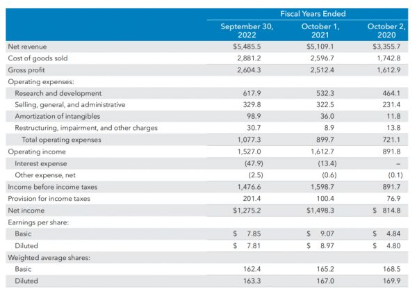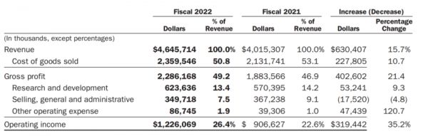 Skyworks 2022财年营收情况(来源:Skyworks财报)