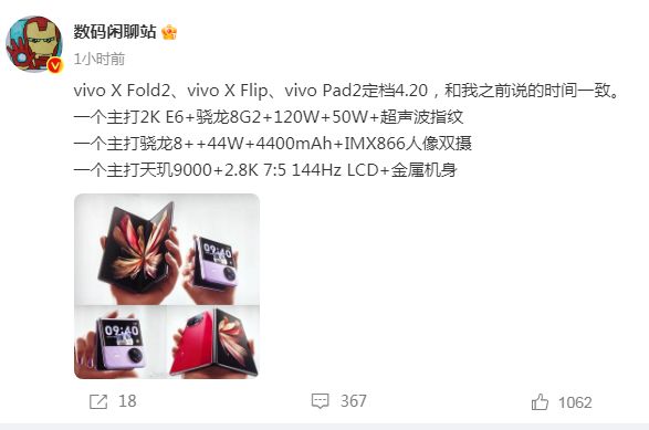 【#vivo新品发布会# 旗下首款小折叠屏或4月20日登场】#vivo折叠屏#