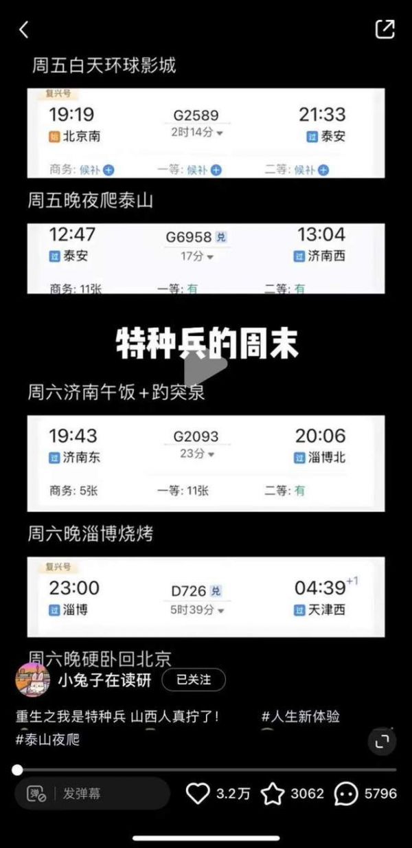 而兔子“跳上前往泰安的火车”也纯属偶然,“我们一开始没有抢到去泰安的票,所以原计划是周六当天先到济南,休息一下,周日再去爬泰山,但同行的伙伴们发现可以先上车再补票,所以我们就临时改变计划,从环球影城出来后直接坐高铁去泰安爬了泰山。”