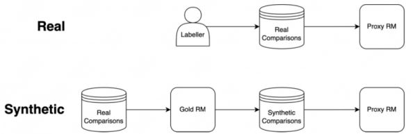 当我们用RL去拟合一个没那么准的RM的时候,就会发生过度优化的情况。OpenAI实验的方法,是用InstructGPT那份真实的数据去训练一个Gold RM,再用Gold RM生成数据去训练一个Proxy RM(下图Synthetic部分):