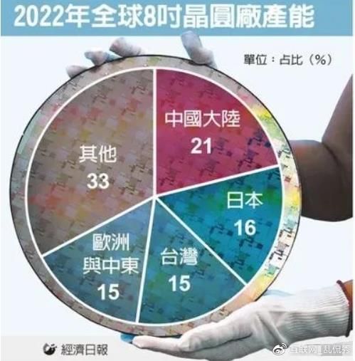 数据显示,2022年,中国大陆在8寸晶圆的产能上,已经是全球第一了,其占比高达21%,远超日本、中国台湾、欧洲及中东等地。
