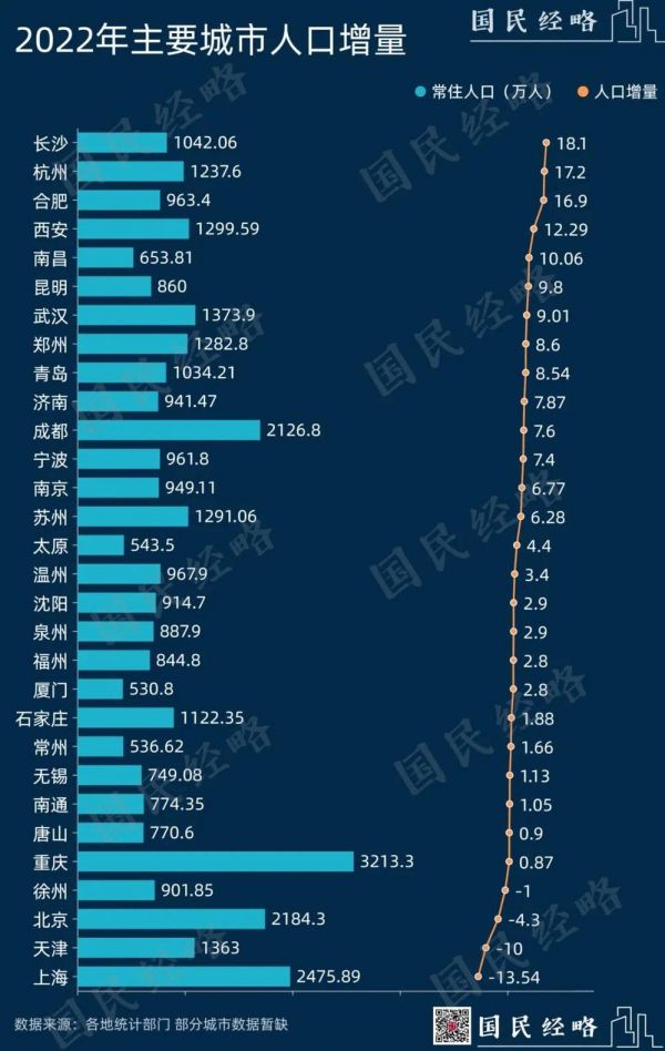 长沙,首次夺得人口增长冠军之位,且GDP增速位列万亿城市之首。