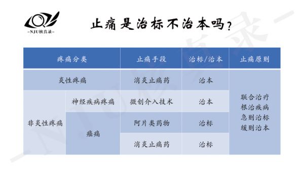 “止痛是治标不治本”的说法,要根据不同的疼痛分情况讨论。