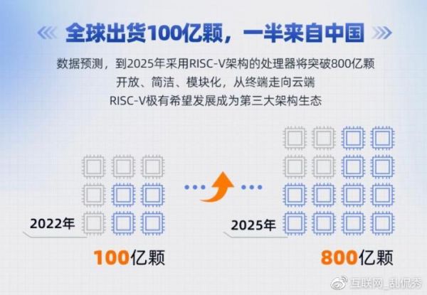 更重要的是,机构预测,其在2025年就能实现800亿出货量,从出货量,以及从芯片种类,性能等等来看,似乎都已经能够与ARM、X86一决雌雄了。