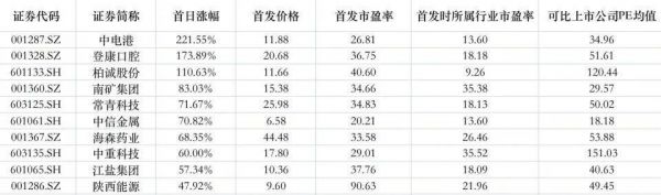 时代财经注意到,以市盈率水平来看,10只新股中市盈率最低的是20.21倍的中信金属(601061.SH),截至收盘该股上涨70.82%;最高的则是90.63倍的陕西能源(001286.SZ),截至收盘上涨47.92%,涨幅在10只新股中最低。