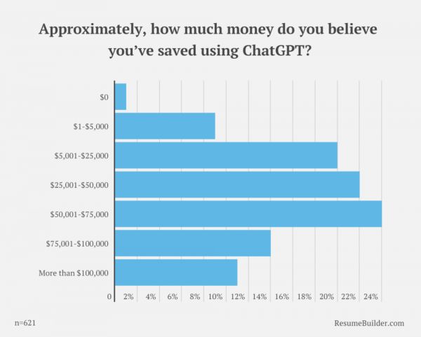 25% 使用 ChatGPT的公司已经节省了 7.5 万美元以上;