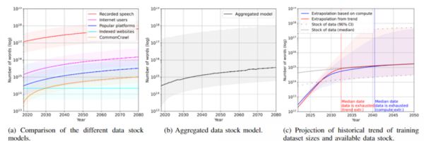 这对于“大力出奇迹”的大语言模型来说,并不是个好消息。如果训练集体量不够,模型便无法继续scaling up,从而不断提升性能天花板。