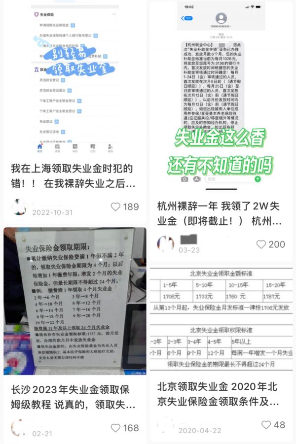 至今仍有不少人在社交平台分享领取失业金经验。受访者供图
