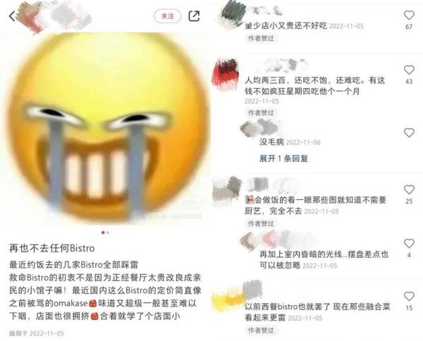 △网络平台上,不乏对Bistro价格的吐槽。/网络截图