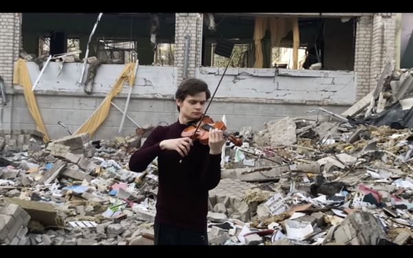 lllia在乌克兰的废墟上演奏《Piece for Illia》(图|YouTube)