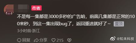 据快科技,日前,有网友发视频吐槽称,她在家看电视时,居然遇到了一个长达3000多秒的广告。随后,她又在评论区表示,自己没开优酷会员,前几集广告都是正常的100多秒,连续播放几集后突然显示3000多秒,当时有被震惊到,比一集电视剧都长,随后尝试重新打开又变回正常,应该是出现了bug。