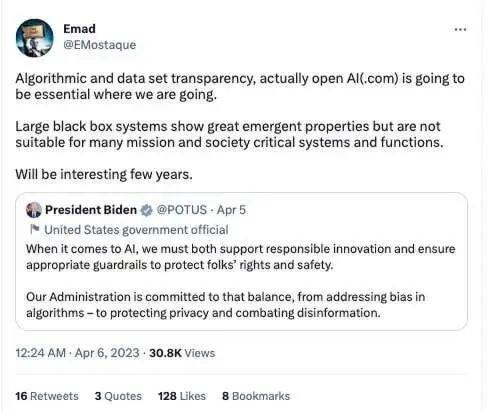 正如 Mostaque 4 月 5 日发送的推文中所说:“算法和数据集的透明度,实际上开放的 AI(.com) 将对我们的发展至关重要。”“大型黑匣子系统并不适合社会关键系统等任务。”