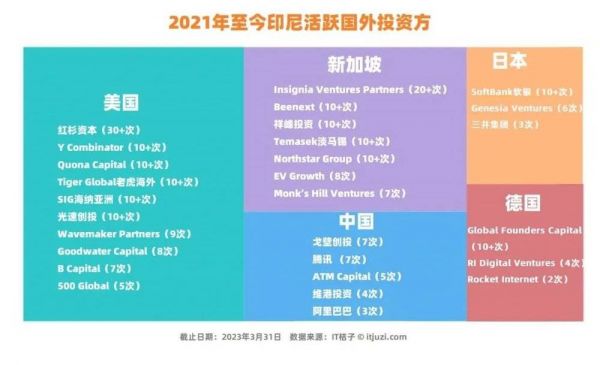 IT 桔子数据显示,2021 年至今投资印尼的国外资本中,活跃投资方来自美国、新加坡、中国、日本和德国。