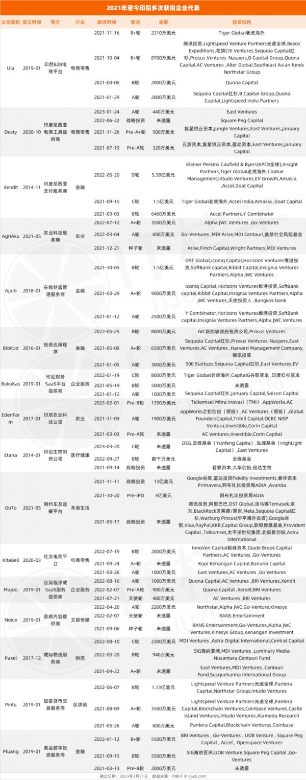 附:2021 年至今获多次融资的印尼企业