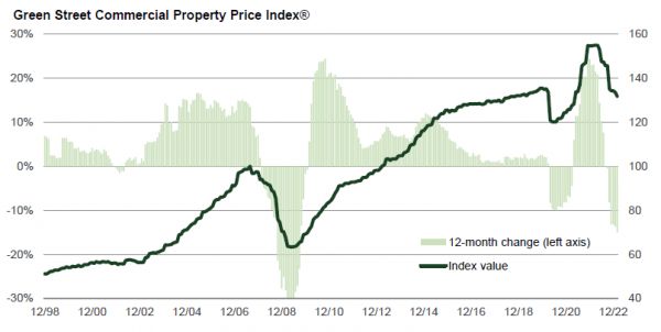 明晟的研报显示,鉴于较高的利率和不确定的前景,2月份美国商业地产交易量同比下降51%至269亿美元,其规模惨遭腰斩。