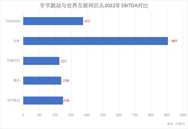 与美国互联网巨头谷歌和facebook相比,字节跳动的利润规模虽然仍有差距,但增长速度却远远超过两者。2022年,谷歌和facebook的息税前利润分别为907亿美元、375亿美元,但均比2021年有所下滑,尤其是Facebook,2022年EBITDA同比下滑30%以上。