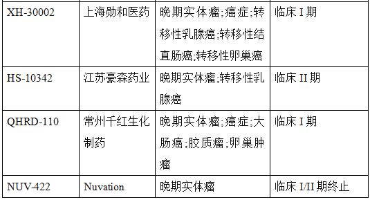 表3. 部分进入临床研究的CDK4/6抑制剂