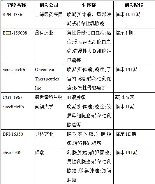 除了这5款已上市的药物外,国内外还有很多企业纷纷布局CDK4/6抑制剂的开发,下面介绍一些代表性药物。
