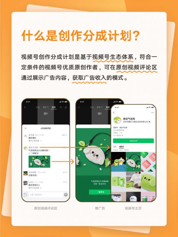 具体来说,视频号创作者的原创视频可以成为付费内容,评论中也可插入广告,类似公众号文章的贴片广告,这个计划帮助创作者更方便、更稳定变现,同时也不影响浏览体验。