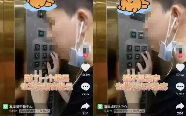 2020年,有一位名叫“盲探-小龙蛋”的残疾网友也曾陷入网暴。在短视频平台上,他分享了自己坐电梯时遇到的不便:既没有语音播报也没有盲文标识,导致他完全不知道自己去到了哪一层。