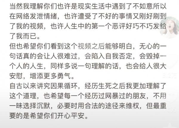 而当她公开了和消防员小李的恋情后,受到的网络暴力,也越发严重。