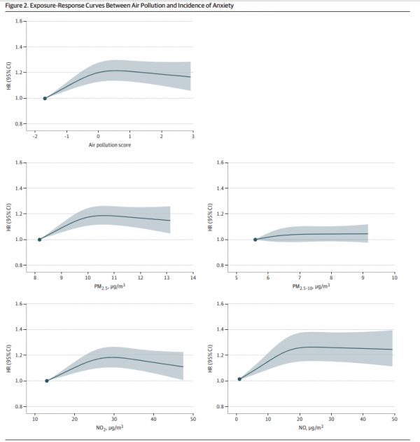 空气污染与焦虑发生率的曲线(图源自论文)