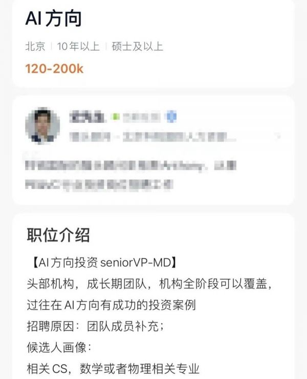 但是,投资AI的门槛比想象中要高多了。求职平台脉脉上显示,近期出现了不少“急招AI投资”的招聘需求。梳理下来,要求意外出奇地一致: