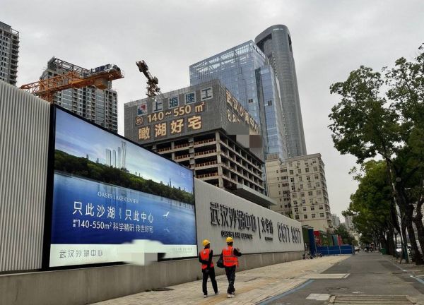 武昌滨江CBD核心区,武汉长江中心外墙上的案名与联系电话格外醒目。这宗曾经轰动业界的地块,正在新旧交替之间寻找确定性。