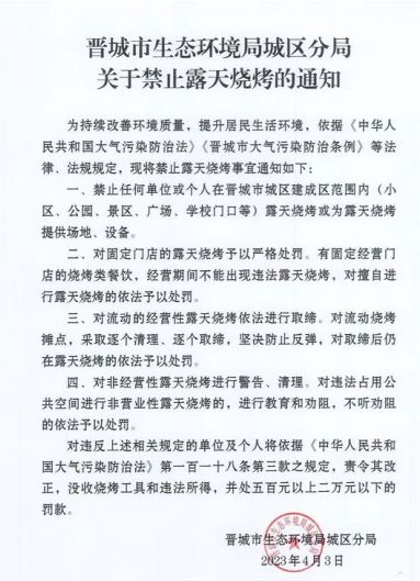 最近山西晋城因为一则“禁止露天烧烤”的通告,成为了舆论关注的焦点。
