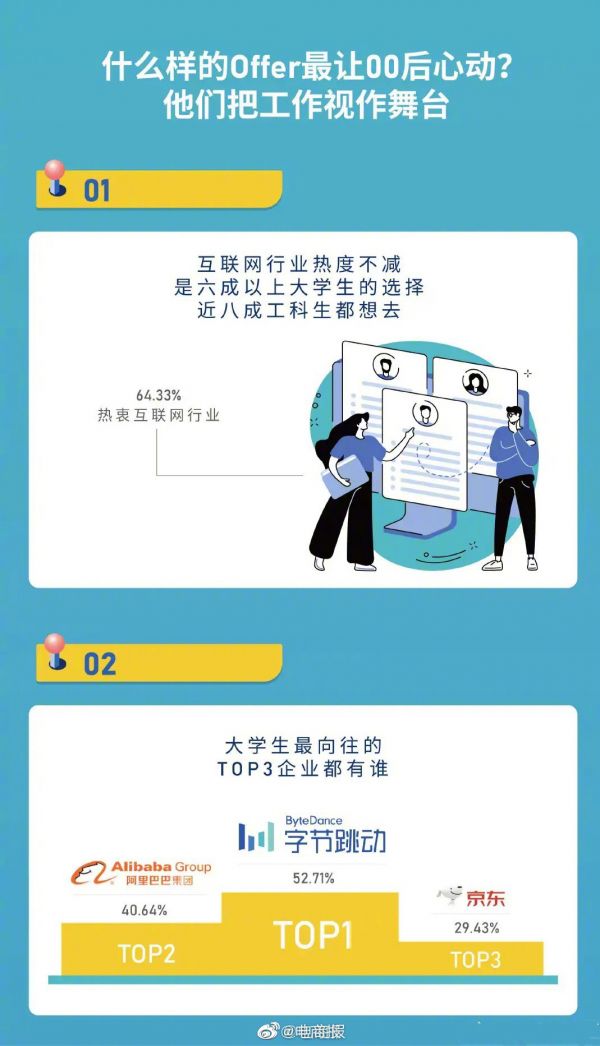 #毕业第一份工作月薪需要多少# 数据显示,六成毕业生期待月薪8000元以上,偏好体制内、互联网企业工作,最向往企业字节跳动、阿里巴巴、京东排前三!