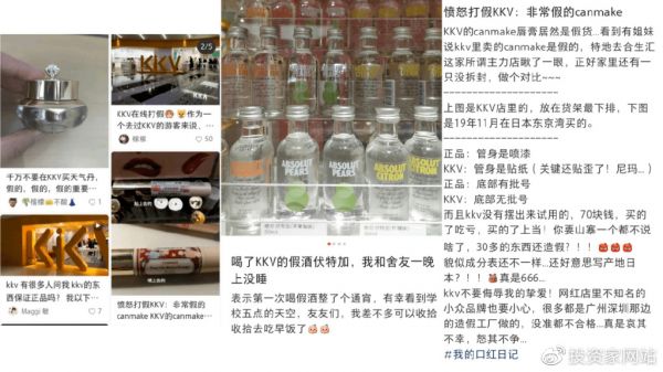 此外,在第三方平台上,有不少网友发帖打假KKV 门店真假混卖,甚至有网友称在KKV 门店买到“假酒”导致一晚上没睡。