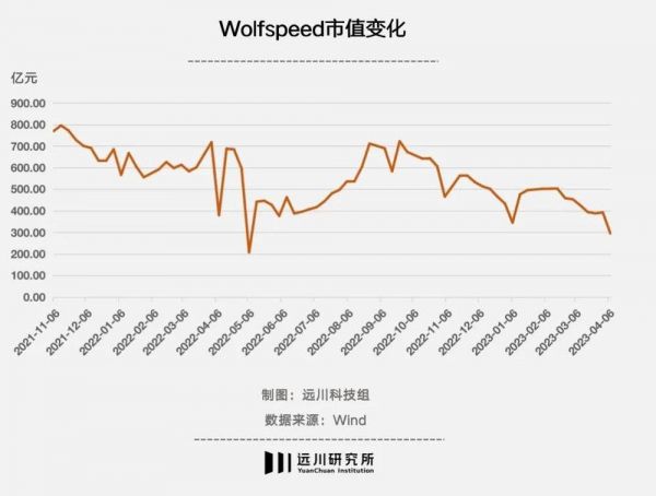 2021年11月12日,改名后一个月,Wolfspeed的市值爬上了最巅峰,到目前只剩下了当时的一半。