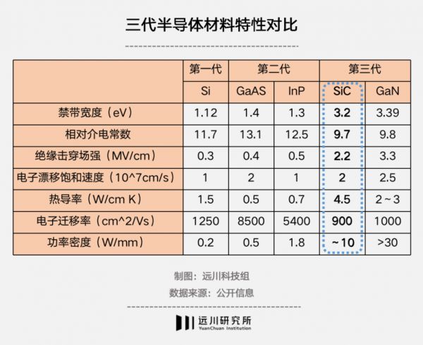 理由是碳化硅可以作为芯片的晶圆衬底,并在物理特性上具备晶带宽度更大、电子漂移速率更大、热导率更大、击穿场强更大的特点,更通俗来说就是可以适应高功率、高频、高温、高电压等恶劣条件,因此在汽车芯片、高压快充等场景中优势尤为明显。