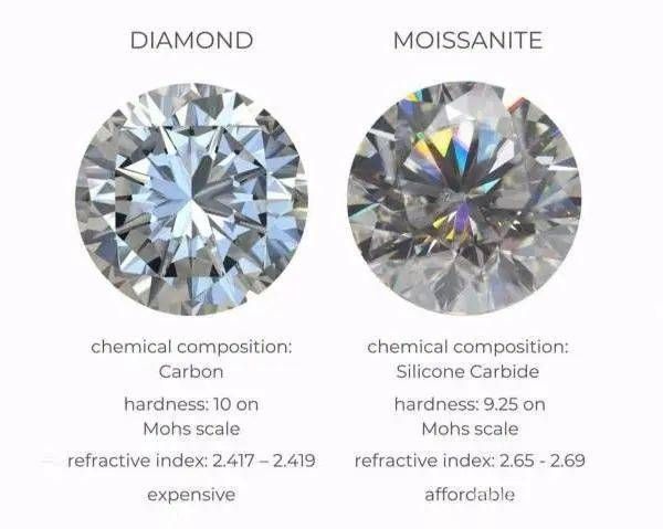 图左:钻石,图右:莫桑石