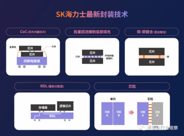 追溯SK海力士封装技术的发展历程,在堆叠竞争时期,SK海力士的封装技术并未表现出显著优势;而随着性能竞争时期的到来,SK海力士的封装技术开始在市场中崭露头角。CoC(芯片内建芯片)技术表现尤为突出,这项技术将凸块互联与引线键合相结合,在提高运行速度和降低成本方面实现了突破。