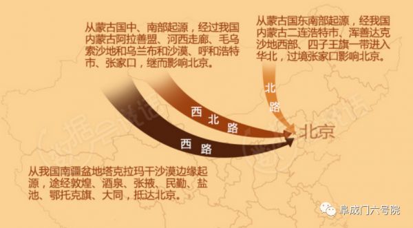 很多人说,蒙古国离北京这么远,怎么沙尘会漂到北京?其实是我们很少去蒙古国,因此感觉远而已,北京到蒙古国边境口岸扎门乌德直线距离不到600公里,还不到北京到上海距离的一半,而整个蒙古国沙源地到北京平均距离也就是1000公里左右。以10级风100公里每小时的速度,中间基本没有地理阻拦,一夜之间就可以进京。