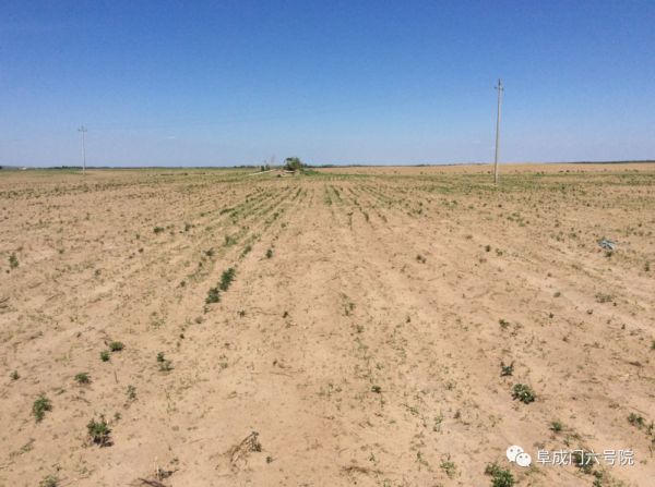 (内蒙古科尔沁沙地2015年6.18沙尘肆虐之处,农田作物基本都被摧毁,笔者摄于阿鲁科尔沁旗哈毕日嘎)