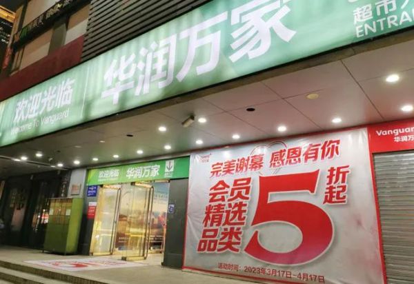 图来源:大众点评。日前,记者来到位于广州天河南二路的华润万家天河东店,门口贴着大幅海报,“完美谢幕 感恩有你”,显示从3月17日至4月17日,会员精选品类五折起。