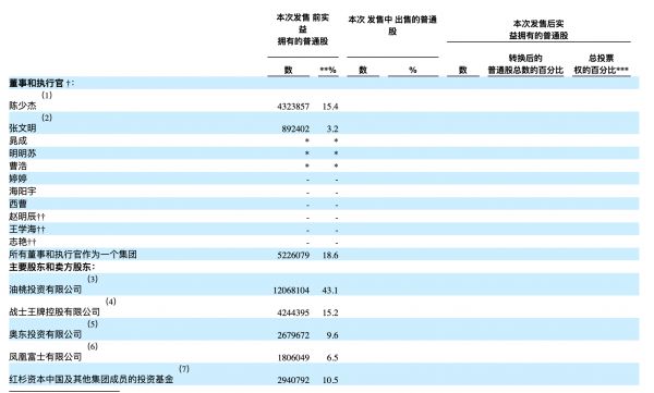 此外,发行股票前,腾讯全资子公司Nectarine Investment Limited持股比例为43.1%;陈少杰通过其离岸公司Warrior Ace Holding Limited持有15.2%;红杉资本中国公司及其他团体成员附属基金实益持有10.5%的股份;奥飞董事长蔡冬青透过Aodong Investments Limited持有9.6%的股份;Phoenix Fuju Limited持有6.5%的股份。